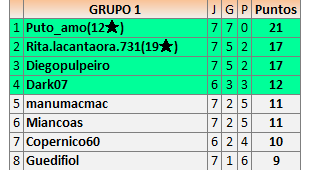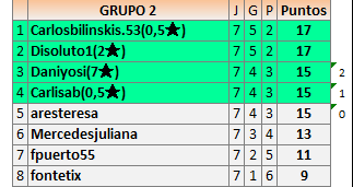 Deja un comentarioEn está página se irán publicando los resultados de las diferentes partidas, siendo ambos jugadores responsables de subirlos o de comprobar que ya hayan sido publicados insertando un COMENTARIO en la parte inferior de la pantalla (opción “Deja tu comentario”), indicando el nombre de los dos jugadores y los puntos obtenidos en la partida.
