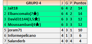 Deja un comentarioEn está página se irán publicando los resultados de las diferentes partidas, siendo ambos jugadores responsables de subirlos o de comprobar que ya hayan sido publicados insertando un COMENTARIO en la parte inferior de la pantalla (opción “Deja tu comentario”), indicando el nombre de los dos jugadores y los puntos obtenidos en la partida.