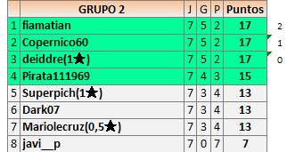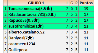 Deja un comentarioEn está página se irán publicando los resultados de las diferentes partidas, siendo ambos jugadores responsables de subirlos o de comprobar que ya hayan sido publicados insertando un COMENTARIO en la parte inferior de la pantalla (opción “Deja tu comentario”), indicando el nombre de los dos jugadores y los puntos obtenidos en la partida.