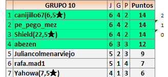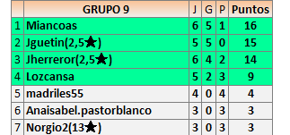 Deja un comentarioEn está página se irán publicando los resultados de las diferentes partidas, siendo ambos jugadores responsables de subirlos o de comprobar que ya hayan sido publicados insertando un COMENTARIO en la parte inferior de la pantalla (opción “Deja tu comentario”), indicando el nombre de los dos jugadores y los puntos obtenidos en la partida.
