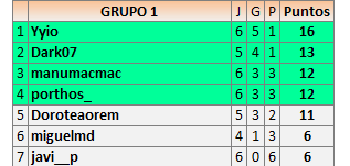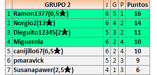 Deja un comentarioEn está página se irán publicando los resultados de las diferentes partidas, siendo ambos jugadores responsables de subirlos o de comprobar que ya hayan sido publicados insertando un COMENTARIO en la parte inferior de la pantalla (opción “Deja tu comentario”), indicando el nombre de los dos jugadores y los puntos obtenidos en la partida.