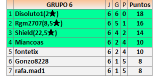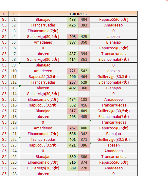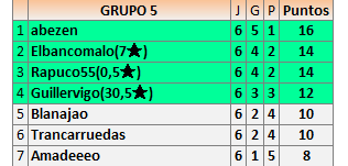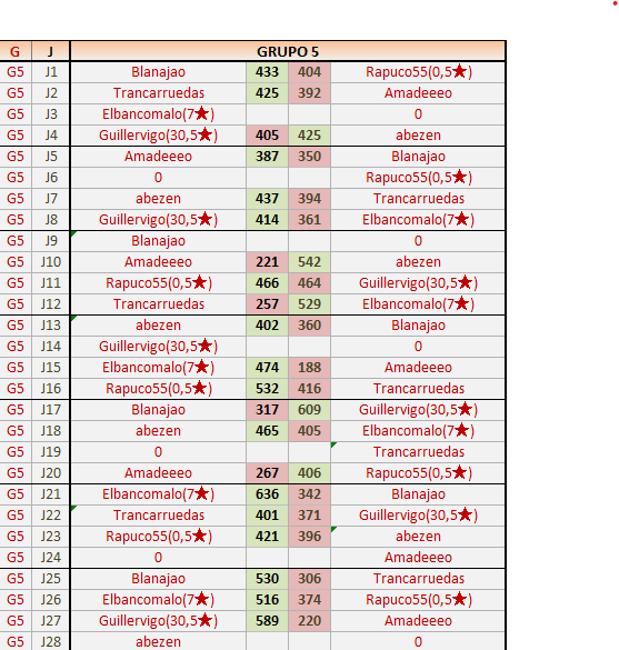 Deja un comentarioEn está página se irán publicando los resultados de las diferentes partidas, siendo ambos jugadores responsables de subirlos o de comprobar que ya hayan sido publicados insertando un COMENTARIO en la parte inferior de la pantalla (opción “Deja tu comentario”), indicando el nombre de los dos jugadores y los puntos obtenidos en la partida.