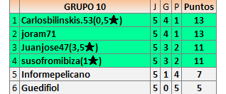 9En está página se irán publicando los resultados de las diferentes partidas, siendo ambos jugadores responsables de subirlos o de comprobar que ya hayan sido publicados insertando un COMENTARIO en la parte inferior de la pantalla (opción “Deja tu comentario”), indicando el nombre de los dos jugadores y los puntos obtenidos en la partida.