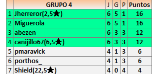 Deja un comentarioEn está página se irán publicando los resultados de las diferentes partidas, siendo ambos jugadores responsables de subirlos o de comprobar que ya hayan sido publicados insertando un COMENTARIO en la parte inferior de la pantalla (opción “Deja tu comentario”), indicando el nombre de los dos jugadores y los puntos obtenidos en la partida.