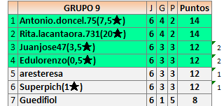 Deja un comentarioEn está página se irán publicando los resultados de las diferentes partidas, siendo ambos jugadores responsables de subirlos o de comprobar que ya hayan sido publicados insertando un COMENTARIO en la parte inferior de la pantalla (opción “Deja tu comentario”), indicando el nombre de los dos jugadores y los puntos obtenidos en la partida.