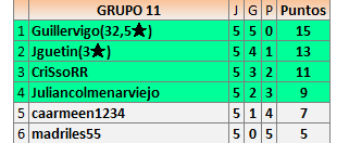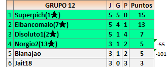 Deja un comentarioEn está página se irán publicando los resultados de las diferentes partidas, siendo ambos jugadores responsables de subirlos o de comprobar que ya hayan sido publicados insertando un COMENTARIO en la parte inferior de la pantalla (opción “Deja tu comentario”), indicando el nombre de los dos jugadores y los puntos obtenidos en la partida.