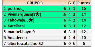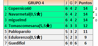 Deja un comentarioEn está página se irán publicando los resultados de las diferentes partidas, siendo ambos jugadores responsables de subirlos o de comprobar que ya hayan sido publicados insertando un COMENTARIO en la parte inferior de la pantalla (opción “Deja tu comentario”), indicando el nombre de los dos jugadores y los puntos obtenidos en la partida.