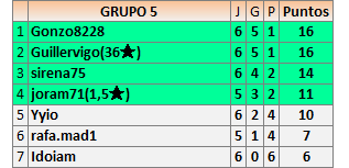 Deja un comentarioEn está página se irán publicando los resultados de las diferentes partidas, siendo ambos jugadores responsables de subirlos o de comprobar que ya hayan sido publicados insertando un COMENTARIO en la parte inferior de la pantalla (opción “Deja tu comentario”), indicando el nombre de los dos jugadores y los puntos obtenidos en la partida.