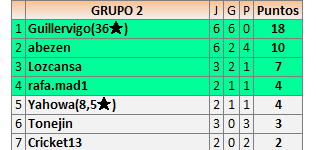 Deja un comentarioEn está página se irán publicando los resultados de las diferentes partidas, siendo ambos jugadores responsables de subirlos o de comprobar que ya hayan sido publicados insertando un COMENTARIO en la parte inferior de la pantalla (opción “Deja tu comentario”), indicando el nombre de los dos jugadores y los puntos obtenidos en la partida.