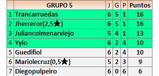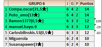 Deja un comentarioEn está página se irán publicando los resultados de las diferentes partidas, siendo ambos jugadores responsables de subirlos o de comprobar que ya hayan sido publicados insertando un COMENTARIO en la parte inferior de la pantalla (opción “Deja tu comentario”), indicando el nombre de los dos jugadores y los puntos obtenidos en la partida.