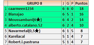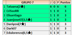 Deja un comentarioEn está página se irán publicando los resultados de las diferentes partidas, siendo ambos jugadores responsables de subirlos o de comprobar que ya hayan sido publicados insertando un COMENTARIO en la parte inferior de la pantalla (opción “Deja tu comentario”), indicando el nombre de los dos jugadores y los puntos obtenidos en la partida.