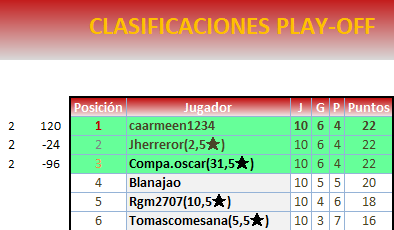 En los playoffs se mantendrán ocultos los resultados para que ningún jugador especule con ellos.