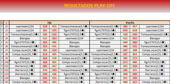 Fin PLAY OFF VUELTA: 5 de diciembre a las 21:00