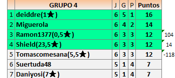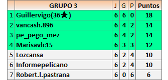 Deja un comentarioEn está página se irán publicando los resultados de las diferentes partidas, siendo ambos jugadores responsables de subirlos o de comprobar que ya hayan sido publicados insertando un COMENTARIO en la parte inferior de la pantalla (opción “Deja tu comentario”), indicando el nombre de los dos jugadores y los puntos obtenidos en la partida.