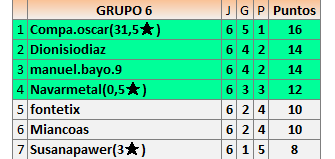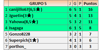 Deja un comentarioEn está página se irán publicando los resultados de las diferentes partidas, siendo ambos jugadores responsables de subirlos o de comprobar que ya hayan sido publicados insertando un COMENTARIO en la parte inferior de la pantalla (opción “Deja tu comentario”), indicando el nombre de los dos jugadores y los puntos obtenidos en la partida.