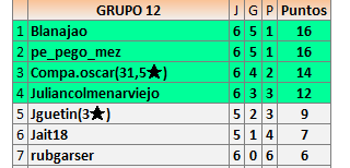 Deja un comentarioEn está página se irán publicando los resultados de las diferentes partidas, siendo ambos jugadores responsables de subirlos o de comprobar que ya hayan sido publicados insertando un COMENTARIO en la parte inferior de la pantalla (opción “Deja tu comentario”), indicando el nombre de los dos jugadores y los puntos obtenidos en la partida.