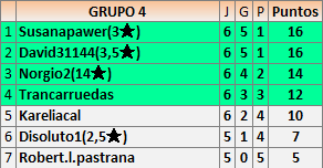 Deja un comentarioEn está página se irán publicando los resultados de las diferentes partidas, siendo ambos jugadores responsables de subirlos o de comprobar que ya hayan sido publicados insertando un COMENTARIO en la parte inferior de la pantalla (opción “Deja tu comentario”), indicando el nombre de los dos jugadores y los puntos obtenidos en la partida.