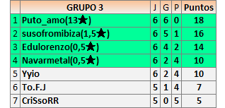 Deja un comentarioEn está página se irán publicando los resultados de las diferentes partidas, siendo ambos jugadores responsables de subirlos o de comprobar que ya hayan sido publicados insertando un COMENTARIO en la parte inferior de la pantalla (opción “Deja tu comentario”), indicando el nombre de los dos jugadores y los puntos obtenidos en la partida.