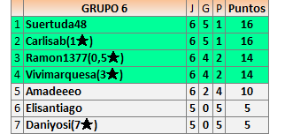 6En está página se irán publicando los resultados de las diferentes partidas, siendo ambos jugadores responsables de subirlos o de comprobar que ya hayan sido publicados insertando un COMENTARIO en la parte inferior de la pantalla (opción “Deja tu comentario”), indicando el nombre de los dos jugadores y los puntos obtenidos en la partida.