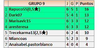 Deja un comentarioEn está página se irán publicando los resultados de las diferentes partidas, siendo ambos jugadores responsables de subirlos o de comprobar que ya hayan sido publicados insertando un COMENTARIO en la parte inferior de la pantalla (opción “Deja tu comentario”), indicando el nombre de los dos jugadores y los puntos obtenidos en la partida.