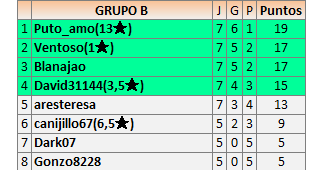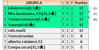 Deja un comentarioEn está página se irán publicando los resultados de las diferentes partidas, siendo ambos jugadores responsables de subirlos o de comprobar que ya hayan sido publicados insertando un COMENTARIO en la parte inferior de la pantalla (opción “Deja tu comentario”), indicando el nombre de los dos jugadores y los puntos obtenidos en la partida.