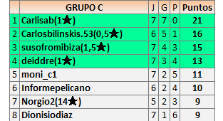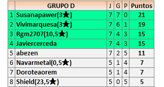 Deja un comentarioEn está página se irán publicando los resultados de las diferentes partidas, siendo ambos jugadores responsables de subirlos o de comprobar que ya hayan sido publicados insertando un COMENTARIO en la parte inferior de la pantalla (opción “Deja tu comentario”), indicando el nombre de los dos jugadores y los puntos obtenidos en la partida.