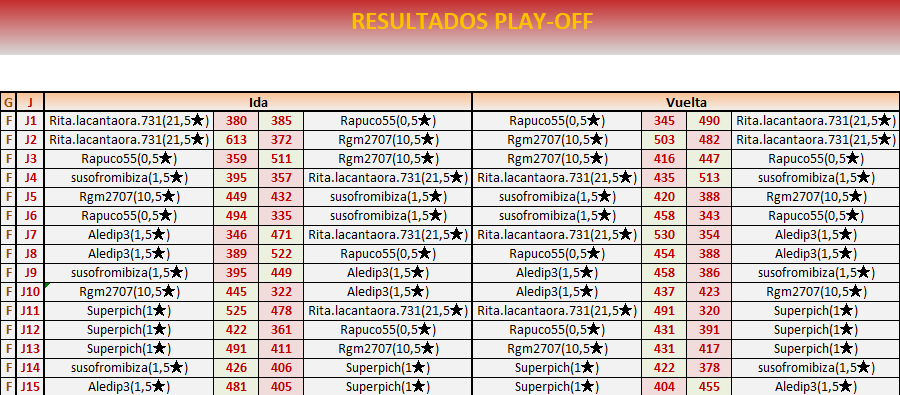 Fin PLAY OFF VUELTA: 14 de enero a las 21:00