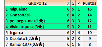 Deja un comentarioEn está página se irán publicando los resultados de las diferentes partidas, siendo ambos jugadores responsables de subirlos o de comprobar que ya hayan sido publicados insertando un COMENTARIO en la parte inferior de la pantalla (opción “Deja tu comentario”), indicando el nombre de los dos jugadores y los puntos obtenidos en la partida.