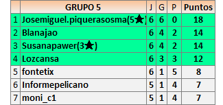 Deja un comentarioEn está página se irán publicando los resultados de las diferentes partidas, siendo ambos jugadores responsables de subirlos o de comprobar que ya hayan sido publicados insertando un COMENTARIO en la parte inferior de la pantalla (opción “Deja tu comentario”), indicando el nombre de los dos jugadores y los puntos obtenidos en la partida.