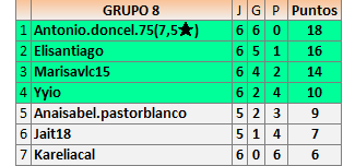 1En está página se irán publicando los resultados de las diferentes partidas, siendo ambos jugadores responsables de subirlos o de comprobar que ya hayan sido publicados insertando un COMENTARIO en la parte inferior de la pantalla (opción “Deja tu comentario”), indicando el nombre de los dos jugadores y los puntos obtenidos en la partida.