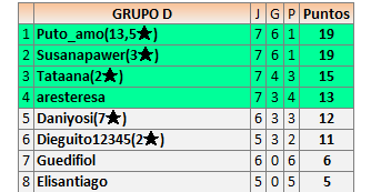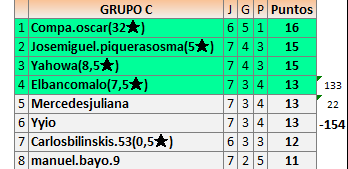 Deja un comentarioEn está página se irán publicando los resultados de las diferentes partidas, siendo ambos jugadores responsables de subirlos o de comprobar que ya hayan sido publicados insertando un COMENTARIO en la parte inferior de la pantalla (opción “Deja tu comentario”), indicando el nombre de los dos jugadores y los puntos obtenidos en la partida.