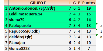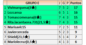 Deja un comentarioEn está página se irán publicando los resultados de las diferentes partidas, siendo ambos jugadores responsables de subirlos o de comprobar que ya hayan sido publicados insertando un COMENTARIO en la parte inferior de la pantalla (opción “Deja tu comentario”), indicando el nombre de los dos jugadores y los puntos obtenidos en la partida.