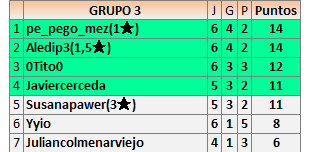 Deja un comentarioEn está página se irán publicando los resultados de las diferentes partidas, siendo ambos jugadores responsables de subirlos o de comprobar que ya hayan sido publicados insertando un COMENTARIO en la parte inferior de la pantalla (opción “Deja tu comentario”), indicando el nombre de los dos jugadores y los puntos obtenidos en la partida.