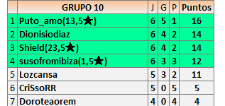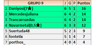 Deja un comentarioEn está página se irán publicando los resultados de las diferentes partidas, siendo ambos jugadores responsables de subirlos o de comprobar que ya hayan sido publicados insertando un COMENTARIO en la parte inferior de la pantalla (opción “Deja tu comentario”), indicando el nombre de los dos jugadores y los puntos obtenidos en la partida.