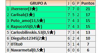 Deja un comentarioEn está página se irán publicando los resultados de las diferentes partidas, siendo ambos jugadores responsables de subirlos o de comprobar que ya hayan sido publicados insertando un COMENTARIO en la parte inferior de la pantalla (opción “Deja tu comentario”), indicando el nombre de los dos jugadores y los puntos obtenidos en la partida.