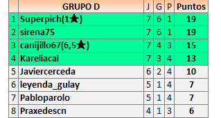 Deja un comentarioEn está página se irán publicando los resultados de las diferentes partidas, siendo ambos jugadores responsables de subirlos o de comprobar que ya hayan sido publicados insertando un COMENTARIO en la parte inferior de la pantalla (opción “Deja tu comentario”), indicando el nombre de los dos jugadores y los puntos obtenidos en la partida.