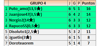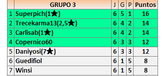 Deja un comentarioEn está página se irán publicando los resultados de las diferentes partidas, siendo ambos jugadores responsables de subirlos o de comprobar que ya hayan sido publicados insertando un COMENTARIO en la parte inferior de la pantalla (opción “Deja tu comentario”), indicando el nombre de los dos jugadores y los puntos obtenidos en la partida.
