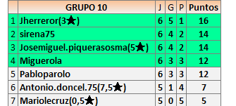 Deja un comentarioEn está página se irán publicando los resultados de las diferentes partidas, siendo ambos jugadores responsables de subirlos o de comprobar que ya hayan sido publicados insertando un COMENTARIO en la parte inferior de la pantalla (opción “Deja tu comentario”), indicando el nombre de los dos jugadores y los puntos obtenidos en la partida.