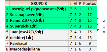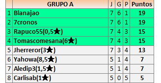 Deja un comentarioEn está página se irán publicando los resultados de las diferentes partidas, siendo ambos jugadores responsables de subirlos o de comprobar que ya hayan sido publicados insertando un COMENTARIO en la parte inferior de la pantalla (opción “Deja tu comentario”), indicando el nombre de los dos jugadores y los puntos obtenidos en la partida.