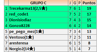 Deja un comentarioEn está página se irán publicando los resultados de las diferentes partidas, siendo ambos jugadores responsables de subirlos o de comprobar que ya hayan sido publicados insertando un COMENTARIO en la parte inferior de la pantalla (opción “Deja tu comentario”), indicando el nombre de los dos jugadores y los puntos obtenidos en la partida.