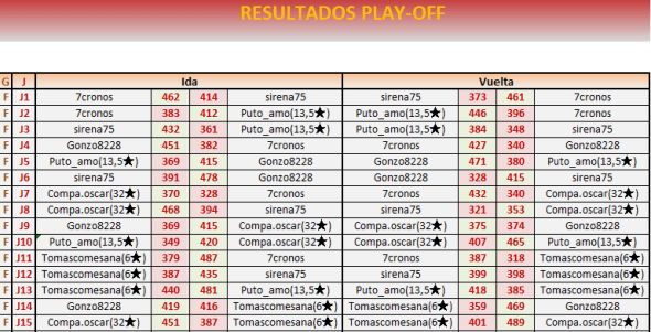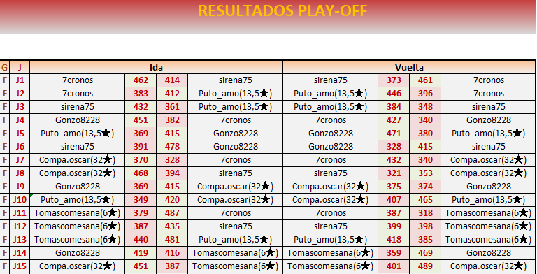 Fin PLAY OFF VUELTA: 19 de abril a las 21:00