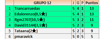 Deja un comentarioEn está página se irán publicando los resultados de las diferentes partidas, siendo ambos jugadores responsables de subirlos o de comprobar que ya hayan sido publicados insertando un COMENTARIO en la parte inferior de la pantalla (opción “Deja tu comentario”), indicando el nombre de los dos jugadores y los puntos obtenidos en la partida.