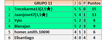 Deja un comentarioEn está página se irán publicando los resultados de las diferentes partidas, siendo ambos jugadores responsables de subirlos o de comprobar que ya hayan sido publicados insertando un COMENTARIO en la parte inferior de la pantalla (opción “Deja tu comentario”), indicando el nombre de los dos jugadores y los puntos obtenidos en la partida.
