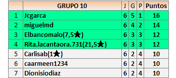 Deja un comentarioEn está página se irán publicando los resultados de las diferentes partidas, siendo ambos jugadores responsables de subirlos o de comprobar que ya hayan sido publicados insertando un COMENTARIO en la parte inferior de la pantalla (opción “Deja tu comentario”), indicando el nombre de los dos jugadores y los puntos obtenidos en la partida.