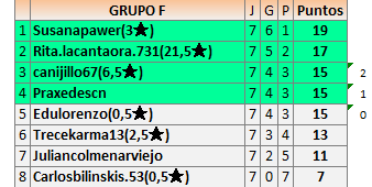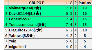 Deja un comentarioEn está página se irán publicando los resultados de las diferentes partidas, siendo ambos jugadores responsables de subirlos o de comprobar que ya hayan sido publicados insertando un COMENTARIO en la parte inferior de la pantalla (opción “Deja tu comentario”), indicando el nombre de los dos jugadores y los puntos obtenidos en la partida.
