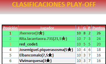 En los playoffs se mantendrán ocultos los resultados para que ningún jugador especule con ellos.