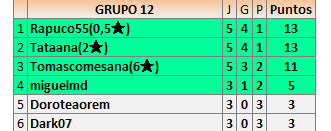 7En está página se irán publicando los resultados de las diferentes partidas, siendo ambos jugadores responsables de subirlos o de comprobar que ya hayan sido publicados insertando un COMENTARIO en la parte inferior de la pantalla (opción “Deja tu comentario”), indicando el nombre de los dos jugadores y los puntos obtenidos en la partida.