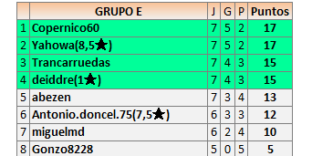 En está página se irán publicando los resultados de las diferentes partidas, siendo ambos jugadores responsables de subirlos o de comprobar que ya hayan sido publicados insertando un COMENTARIO en la parte inferior de la pantalla (opción “Deja tu comentario”), indicando el nombre de los dos jugadores y los puntos obtenidos en la partida.