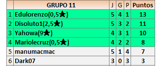 Deja un comentarioEn está página se irán publicando los resultados de las diferentes partidas, siendo ambos jugadores responsables de subirlos o de comprobar que ya hayan sido publicados insertando un COMENTARIO en la parte inferior de la pantalla (opción “Deja tu comentario”), indicando el nombre de los dos jugadores y los puntos obtenidos en la partida.
