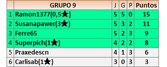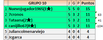 Deja un comentarioEn está página se irán publicando los resultados de las diferentes partidas, siendo ambos jugadores responsables de subirlos o de comprobar que ya hayan sido publicados insertando un COMENTARIO en la parte inferior de la pantalla (opción “Deja tu comentario”), indicando el nombre de los dos jugadores y los puntos obtenidos en la partida.